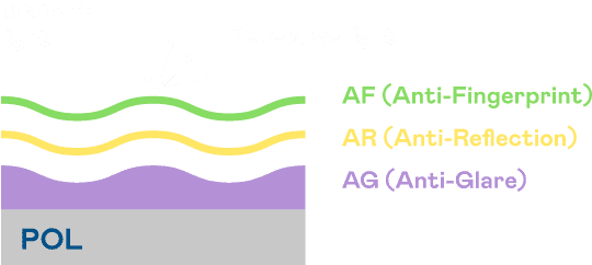 A.R.T.口袋牛店光电发展出独家的表面处理跟多层镀膜技术,,,让外部光线照射到显示器表面时所产生的反射光大幅降低。。。。 |